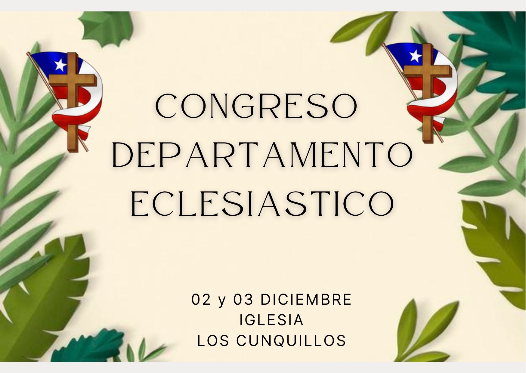 Con fecha 02 y 03 de Diciembre, se desarrollara el Congreso del Departamento Eclesiastico en la Iglesia Wesleyana de Los Cunquillos.