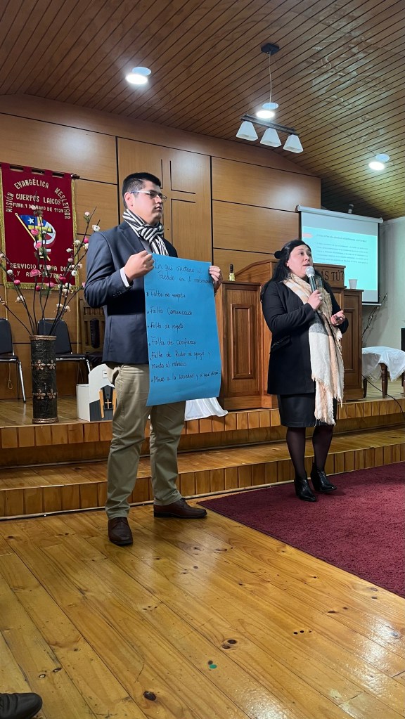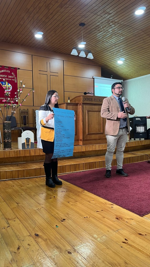 El dia domingo 05, se desarrolló un Estudio Bíblico, denominado «EL MATRIMONIO» donde se expusieron de 3 formas este Tema, desde el lado Civil, expuesto por nuestra hermana Silvana Pino, Abogado de Familia; desde el lado Cristiano, Expuesto por nuestro hermano Presidente Nacional Carlos Nuñez Gallardo de la Iglesia de Los Morros, y desde el punto Eclesiástico y de nuestra Misión, expuesto por nuestro Obispo Pastor Eduardo Cid Cortez.