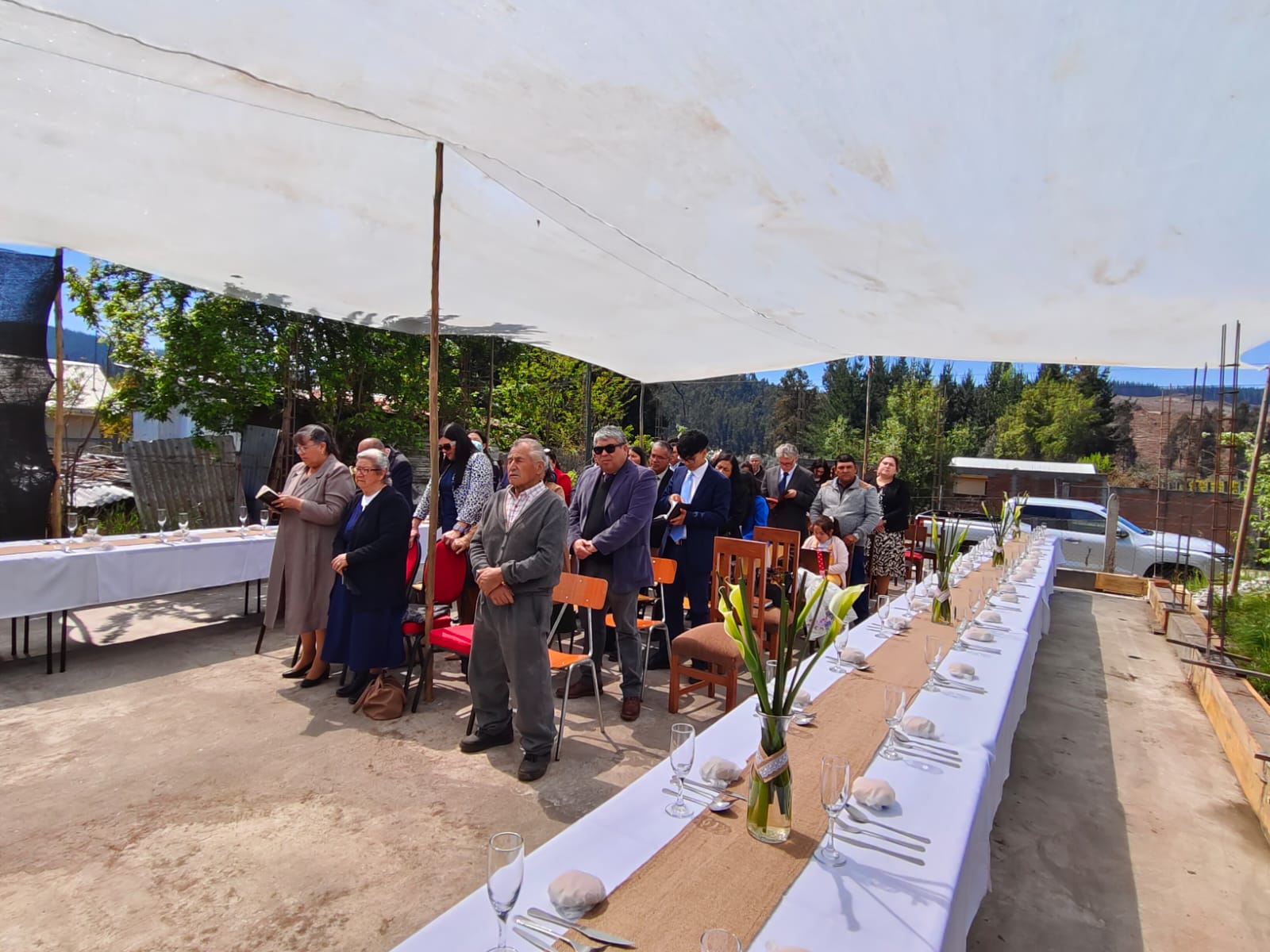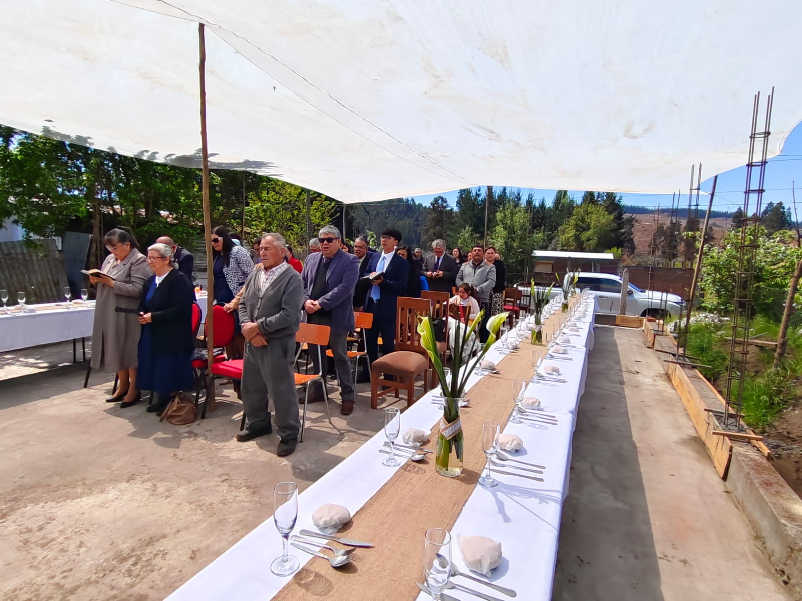 Esta actividad se dio inicio con un hermoso Culto de adoración a nuestro Dios, después todos los asistentes compartieron un almuerzo campestre, y posterior a eso, se comienzan los trabajos de construcción. Todos juntos y en Armonia.