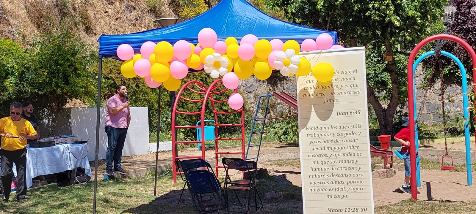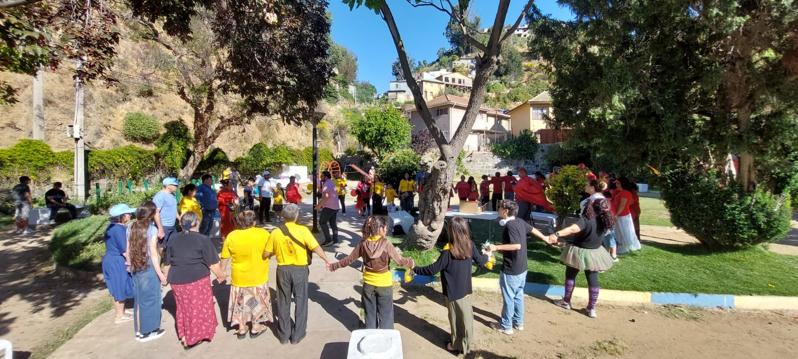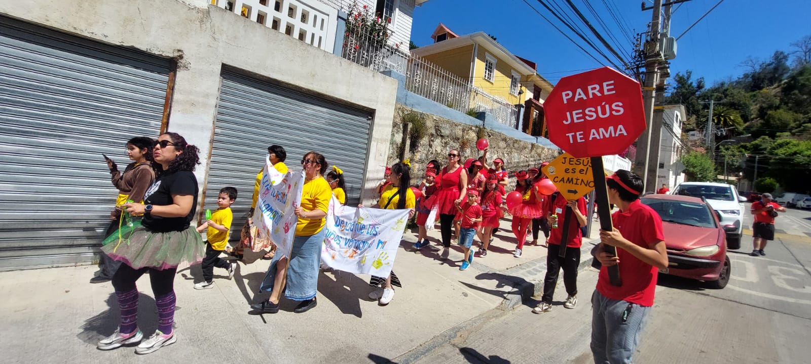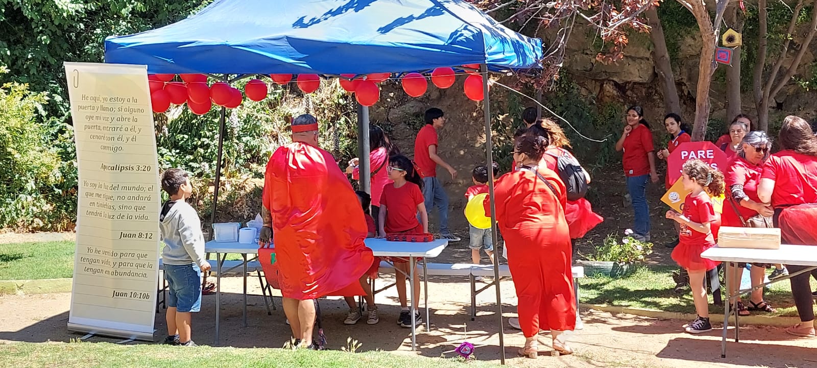ESCUELA DOMINICAL A NIVEL NACIONAL. Como cada año se realizo una vez más el trabajo «Pequeños Gigantes en Cristo» en esta oportunidad le correspondió a la zona Norte, específicamente a las Iglesias de Hijuelas, Valparaíso y Villa Alemana; quienes se reunieron en la plaza de juegos cerca de la Iglesia de Valparaíso, donde los alumnos de las clases de parvulo, niños y pre adolescentes desfilaron y se unieron en Alianzas compitiendo y compartiendo este maravilloso dia juntos; dentro de las actividades desarrolladas hubieron Stand con juegos infantiles y de manualidades, exposiciones, entrega de Biblias y la enseñanza tan importante del PLAN DE SALVACIÓN a los alumnos participantes. Esta actividad estuvo dirigida por el directorio nacional de las Escuelas Dominicales de nuestra Misión y fue de muchas bendiciones para todos los asistentes ya que además se evangelizó a niños y familias del sector aledaño a la iglesia de Valparaiso, quienes se acercaron y fueron bendecidos por las actividades desarrolladas.